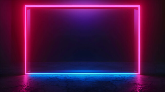 A vibrant neon glowing rectangle frame illuminated from the back on a dark black background forming a captivating silhouette, silhouette, black background, rectangle, illuminated, backlit