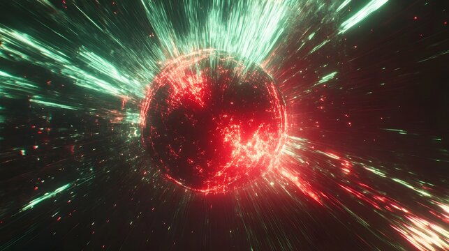 Futuristic data sphere with glowing network connections and vibrant red core, ideal for technology, AI, and digital innovation concepts