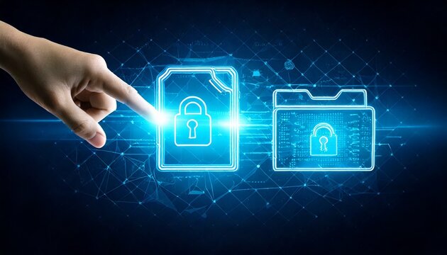 Futuristic cyber lock system with digital network background