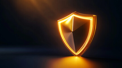 Metallic gold shield with glowing orange outline, dark background, showcasing security and protection concepts