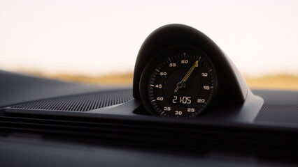 Sports Car Clock Glowing in Golden Hour Light