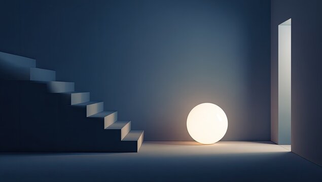 Glowing blue orb in futuristic digital corridor
