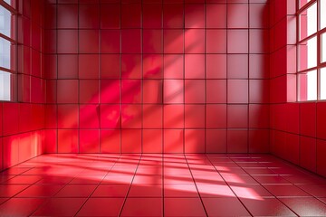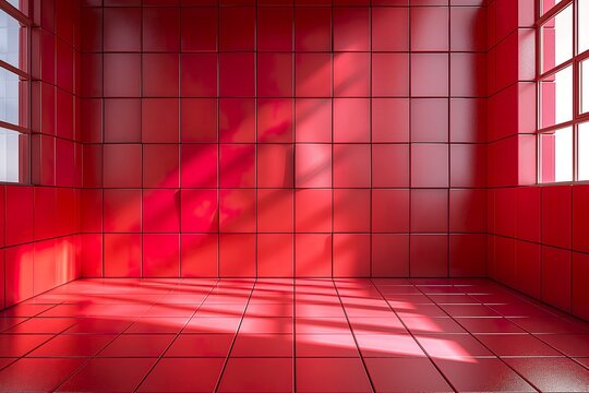Red ceramic mosaic tile texture with high-gloss finish, subtle shadows, and visible grout lines.