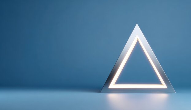 Geometric, illuminated triangle on a blue surface