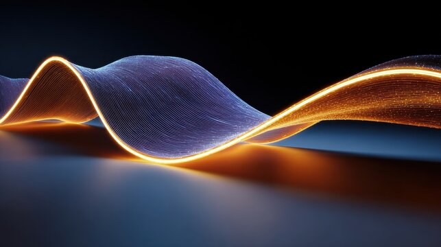Digital waveforms with glowing blue and orange particles, abstract energy flow and motion contrast.