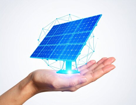 hand holding solar panel, Solar in hand blue wireframe