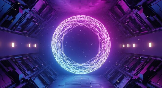 Futuristic Abstract Neon Tunnel with Glowing Circle