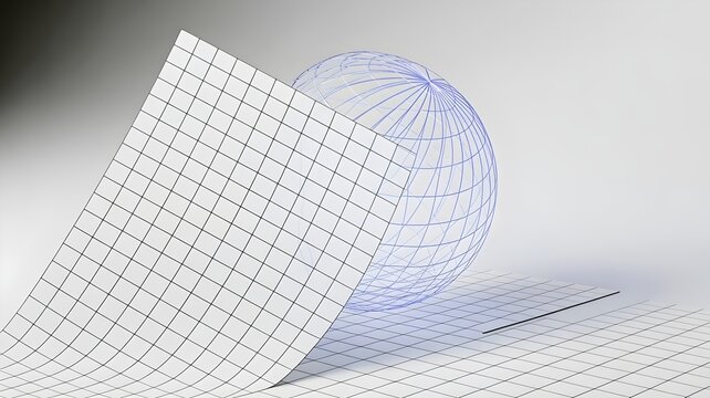 Glowing blue mesh sphere on gray geometric grid