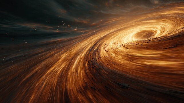 Cosmic vortex forming, pulling glowing dust and energy into its swirling current