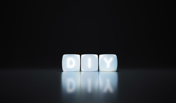 Lightbox, backlit letter cubes with R&D abbreviation on black background, 3d rendering. Internet slang, abbreviation sign and corporate concept