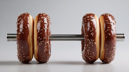 Humorous Donut Dumbbell on Clean Grey Background Symbolizing the Struggle Between Indulgence and Fitness Aspirations