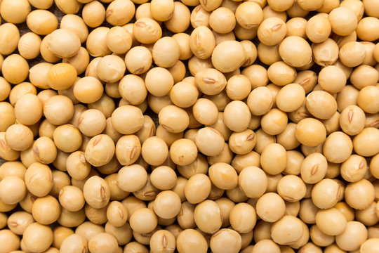 Close-up of Soybean field ready to harvest on a gray autumn day. Cultivated Glycine max