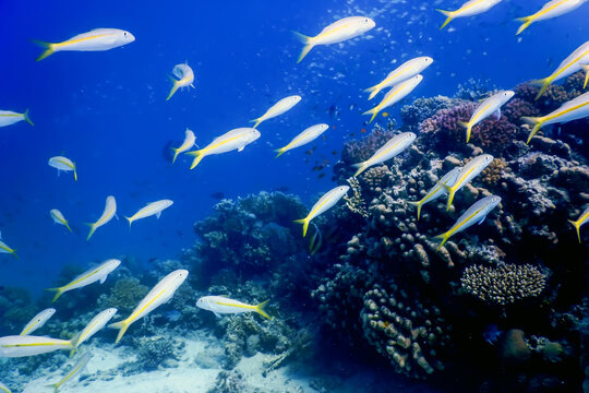 yellowfin goatfish shool fish on reef