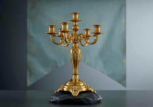 Elegant antique candelabra with dripping wax candles, gothic style, isolated on white background