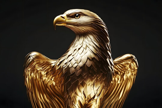 Gold Eagle. 3D Illustration of American Bald Hawk in Stunning Gold Finish
