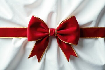Luxurious red bow with gold edging on a clear backdrop