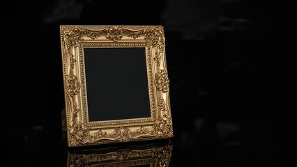 Luxurious gold filigree frame on navy blue textured panel for elegant invitations