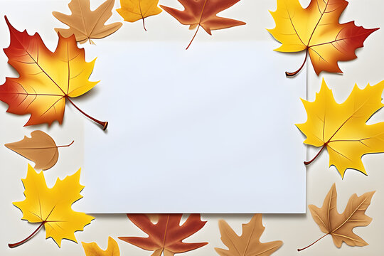 Autumn holiday banner featuring a stack of yellow maple leaves on a white background with room for text