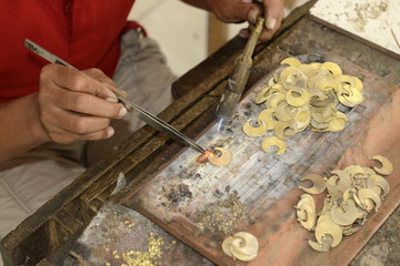 Soldering gold jewellery, Mas, Bali, Indonesia