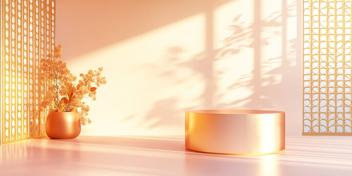 Creating elegant gold lattice wall panel forming geometric luxury interior backdrop