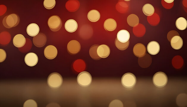 Merry christmas gold and red ribbons with bokeh lights and satin streamers