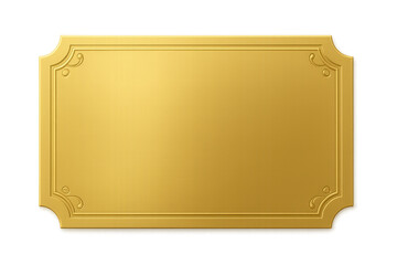 Rectangular gold plaque with rounded corners and brushed texture isolated on a transparent background