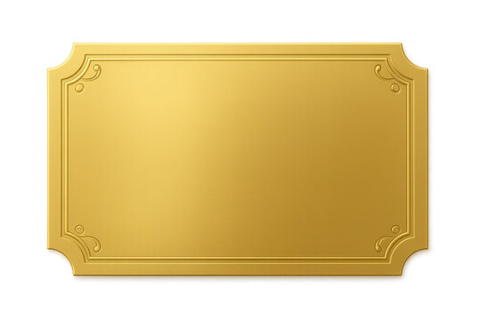 A shiny gold plaque with a brushed finish, featuring rounded corners and four mounting screws.