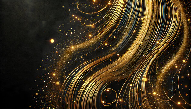 Glowing gold bokeh lights filling dark backdrop with warm festive sparkle and amber orbs