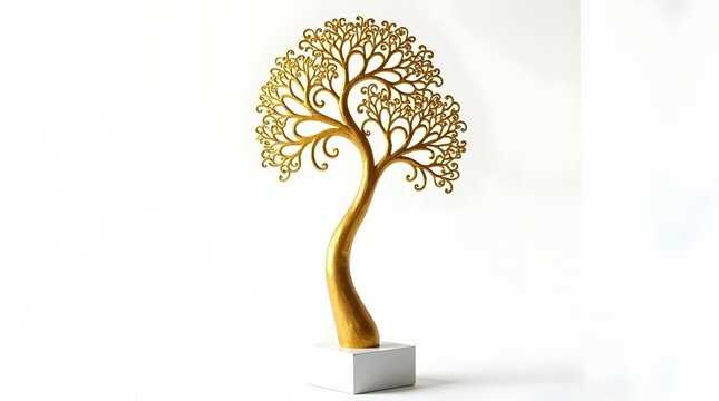 Elegant gold tree sculpture featuring intricate branches and a smooth base, symbolizing growth and harmony.