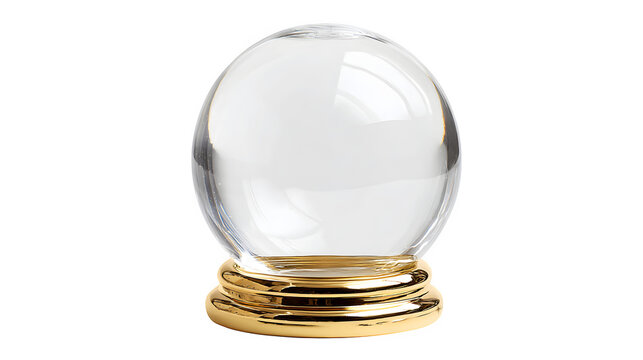 Empty glass snow globe with golden base isolated on white background