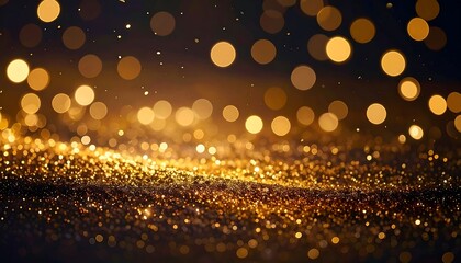 Golden bokeh lights cascade over a textured surface, shimmering warmly against a dark background