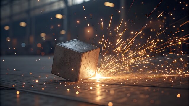 Futuristic glowing cube inside virtual cyberpunk chamber
