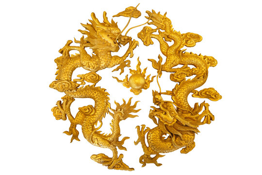 Golden Dragon sculpture with isolate white background