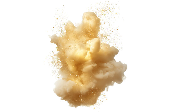 golden  cloud explosion effect abstract smoke bomb isolated on white background for design element on transparent background