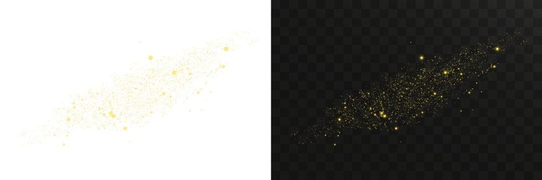 Gold glitter bokeh light png. Tiny glowing yellow particles mix with bright bokeh lights, forming sparkling highlights. The vibrant golden sparkles shine over a transparent background.
