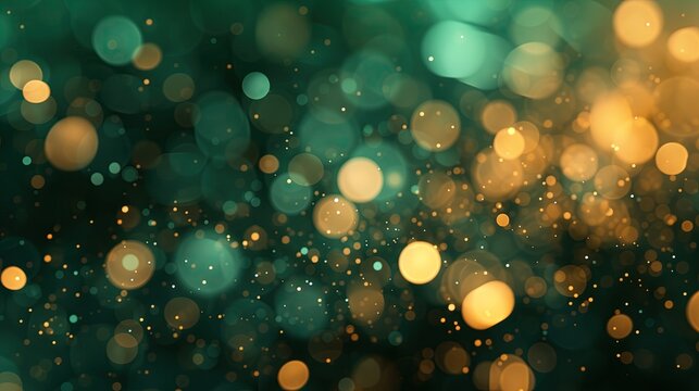 Abstract Bokeh Lights Background With Vibrant Green, Teal and Gold Hues