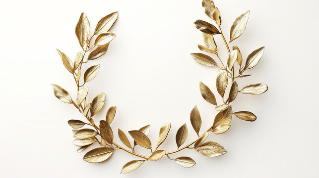Elegant golden laurel wreath on a white background for victory or award.