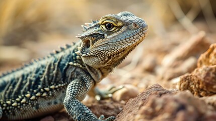 Stunning desert lizard basks on sunlit rock with warm golden hour glow