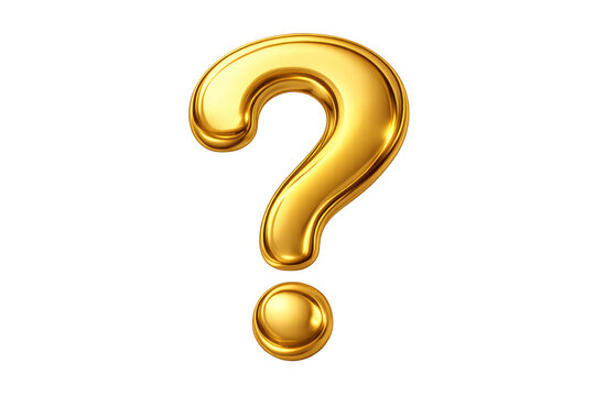 Golden 3d shiny question mark symbol on transparent background representing curiosity and information concept