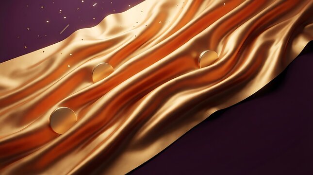 Flowing golden silk waves with glossy satin sheen for luxury backgrounds and textures