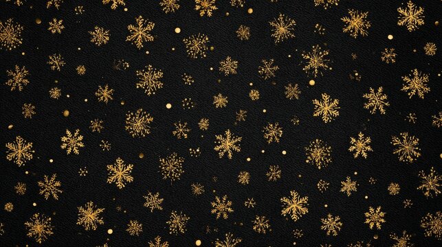 Elegant christmas background featuring shimmering gold snowflakes on a black backdrop, luxurious holiday design perfect for festive greeting cards, winter party invitations, and sophisticated seasonal