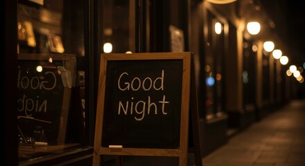 Nighttime streetscape goodnight wishes warm lights enchanting ambiance