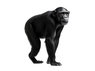 Portrait of a thinking young lowland gorilla with black fur sitting on a white background