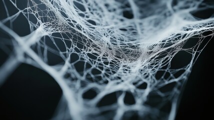 Delicate intricate texture of spiderwebs woven with thin sticky threads against a dark background