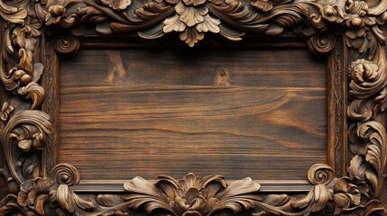 Intricate wooden medieval frame with empty space with copyspace