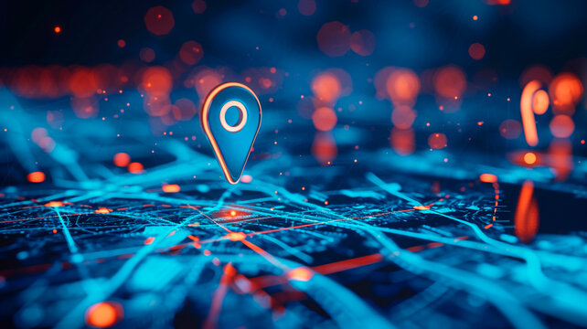 Digitally mark the position on the map with two pins. gps tracking by coordinates in maps. location point. Generative AI