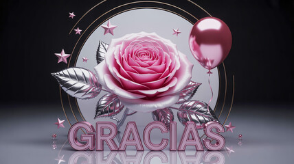 Elegant pink rose with gracias text and metallic accents for appreciation