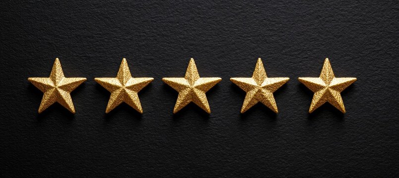Five gold stars aligned in a row on a dark gray textured background