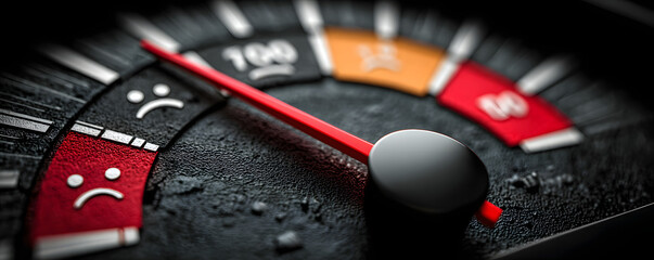 Gauge measuring customer service satisfaction indicates critically poor level. This indicator shows bad rating with needle deep in red zone reflecting urgent risk and needed improvement