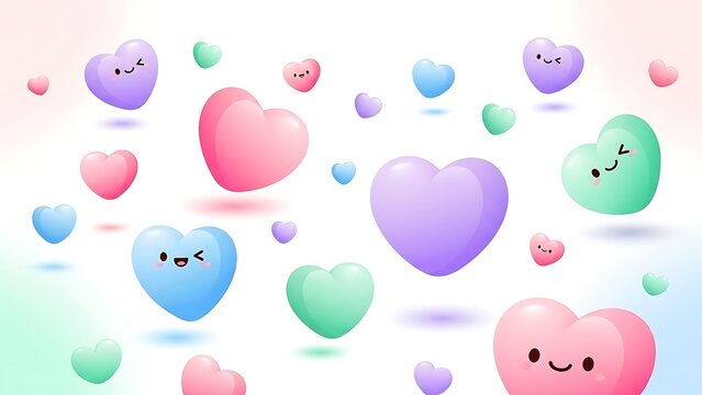 Colorful cartoon hearts floating in air